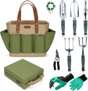 Garden Tool Tote Solid Bag with 11 Piece Hand Tools,Best Gardening Gift Set O...
