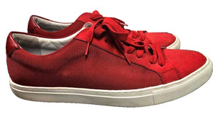 Alfani Perforated Red Lace- Up Sneakers Suede Accents Memory Foam Size 11