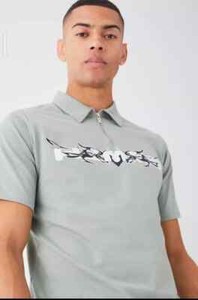 Boohoo Me Homme Graphic Polo Shirt Men's Size M Green