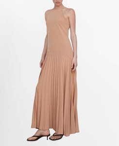 Mango Womens Pleated Panel Dress - Coffee, Size 10