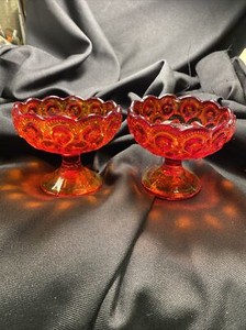 Set of 2 Moon and Stars Amberina by L.E. SMITH GLASS Candle Stick Holders Nice !