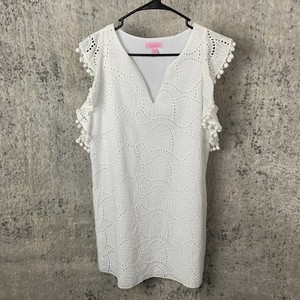 Lilly Pulitzer Astara Dress Small White Lace Pom Pom Leaf Eyelet Women’s