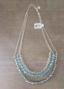 Ann Taylor Loft signed Necklace multi strands With Blue Gray and Clear Beads