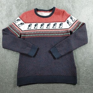 Fat Face Jumper Mens Small Navy Red Fair Isle Penguin Crew Neck