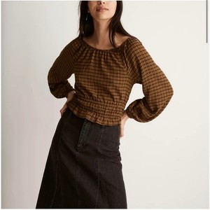 Madewell Tie Back Cutout Top Plaid Olive Green Size XS Long Sleeve