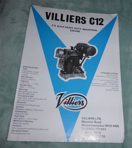 Villiers C12 Heavy Duty Industrial engine 2-5 BHP spec sheet dated 1970