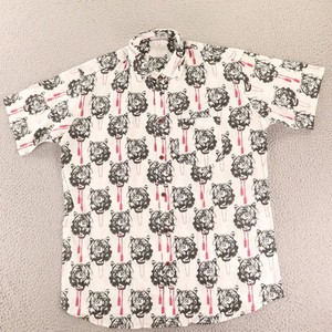 Tiger Shirt Mens M Tiger Print Short Sleeve Button Up Casual Cotton Hopsack NEW