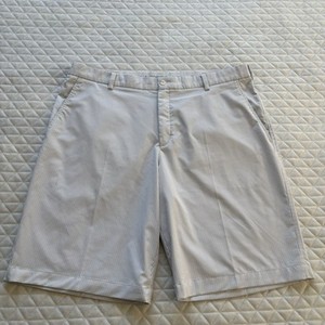 Nike Golf Men’s Shorts Size 38 White Gray Stripes Back Slash Pockets Lightweight