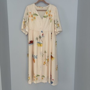 RHODE Goa Party Karline Dress Size XXL 100% Linen Animal Print Spell Out Beachy