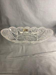 Anna Hutte Bleikristall Oval Bowl Floral Detail 13” Long Lead Crystal 24%