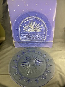 Avon Fostoria Classic American Blue Glass Dinner Plates 10" Set Of 2