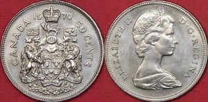 Brilliant Uncirculated 1966 Canada Silver 50 Cents From Mint's Roll