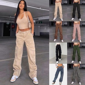 Women Cargo Combat Denim Jeans Ladies Casual Elastic Waist Pocket Pants Trousers