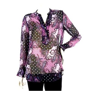 Susan Graver X-Large 18 20 Top Chiffon Black Purple Button Shirt Dot Blouse XL