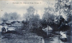 Chicago, IL Washington Park, Sheep and Bridge Divided Back Postcard Unposted