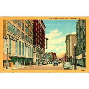 Postcard New York Jamestown Third Street Looking East Street Scene Linen