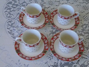 C-1107B 4 Kobe Charlton Hall Classic Traditions Christmas Cups and Saucers