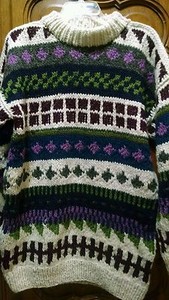 Fair Isle Wool Sweater Handmade Moc Turtleneck sz M/L