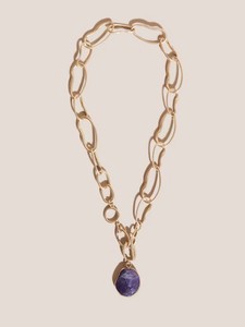White Stuff Chain Necklace with T-Bar Clasp and Stone Pendant Elegant Jewellery