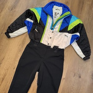 Vintage 1980s Ski Suit Tyrolia One piece Snowsuit Snow Bib Retro Womens 8 Petite