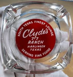 Clyde's 77 Ranch Vintage Souvenir Advertising Ashtray South Texas Finest Lounge