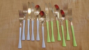 12 STAINLESS CHINA FORKS/SPOONS/KNIVES MINT GREEN/SKY BLUE MINT!!