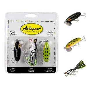 Legendary 3-Pack Fishing Lures: 2 Jitterbugs & Hula Popper for Topwater Action