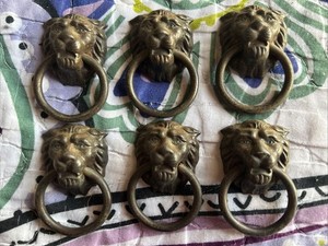 Vintage Brass Lion Head Drawer Pulls Set Of 6 See Pics