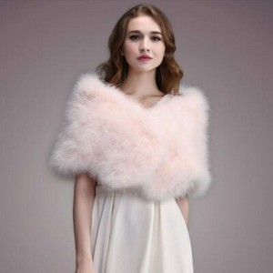 Women Real Ostrich Feather Fur Shawl Wraps Cape Bride Wedding Dress Pink