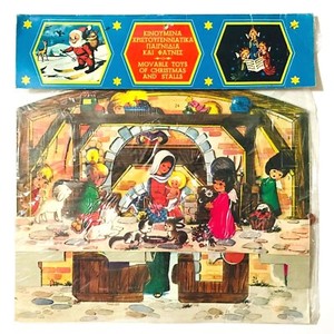 VINTAGE CHRISTMAS MANGER NATIVITY SCENE ADVENT CALENDAR CARDBOARD NEW GREEK RARE