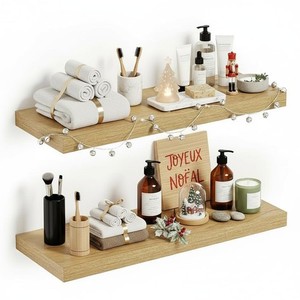 Oak Floating Shelves 24 inchs Long, 9.1” Deep Bathroom Shelves Wall Mounted f...