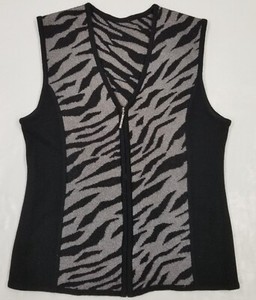 Vtg Sweater Vest Top Tight Knit V Neck Zip Black Silver Animal Print Wms Medium