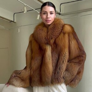 Trendy Genuine Real Fox Fur Coat for Women Winter Real Fur Jacket Lapel Overcoat