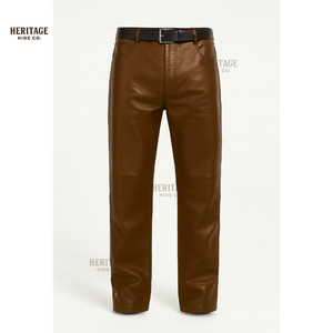 Men's Leather Brown Pants- Leather Biker Trousers Jeans- Casual Leather Pants
