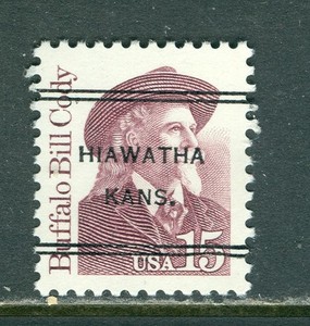 Hiawatha KS 247 DLE precancel 15c Buffalo Bill Great American, genuine PO plate
