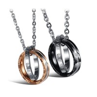 His Her Titanium Steel Couple Pendant Necklace Matching Set Engraved Love Sty...