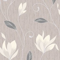 Vymura Synergy Glitter Floral Designer Feature Wallpaper Taupe / Cream / Silver