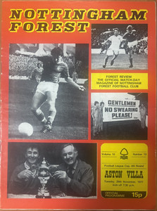 Nottingham Forest Programme 1977/78 Season vs Aston Villa 29th November 1977