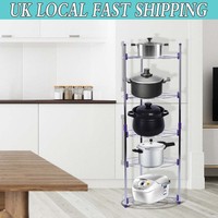 5 Tier Metal Kitchen Pan Stand Pot Saucepan Storage Organizer Unit Rack Holder