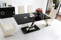 New FLORINI 'V' Gloss Chrome Black Metal/Glass 6 Seater Chairs Dining Table Only