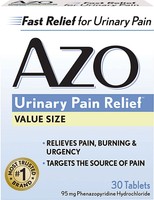 This product, AZO, acts rapidly and gives relief from urinary symptoms such as pain and frequency. The effect lasts for up to 24 hours. It colours the urine a bright orange. I am unaware of any side effects