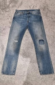 Levi's 501 Men's Worn Look Faded Blue Straight Fit Jeans W34 L34 Vintage Ex Con