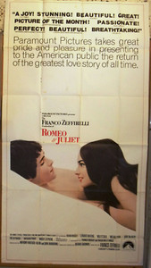 3sh Romeo and Juliet (Olivia Hussey) 41"x81" Original Movie US Poster R70s