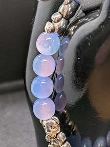 Blue and White Beaded Bracelet With Dangle Butterfly