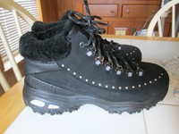 Skechers D'Lites Gleeful 48813 Black Leather Ankle Boots - Women's Size 6.5