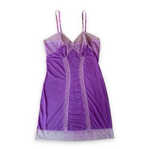 Vintage 60s 70s Slip Dress Purple White Lace Floral Nightie Lingerie Semi Sheer