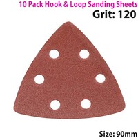 QTY 10 90mm 120 Grit Triangle Sander Sheets Delta Hook & Loop Sanding