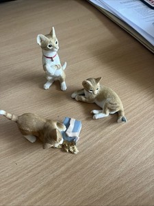3x Sherratt & Simpson Cats opening parcel , butterfly on tail and standing