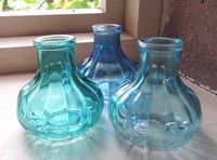 Boxed Set of 3 Small Aqua Bud Vases, Vintage Style Glass, Blue, Green
