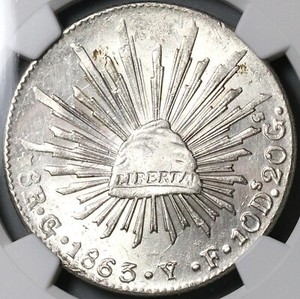 1863-Go NGC MS 62 Mexico 8 Reales Guanajuato Cap Rays Silver Coin (23031201D)